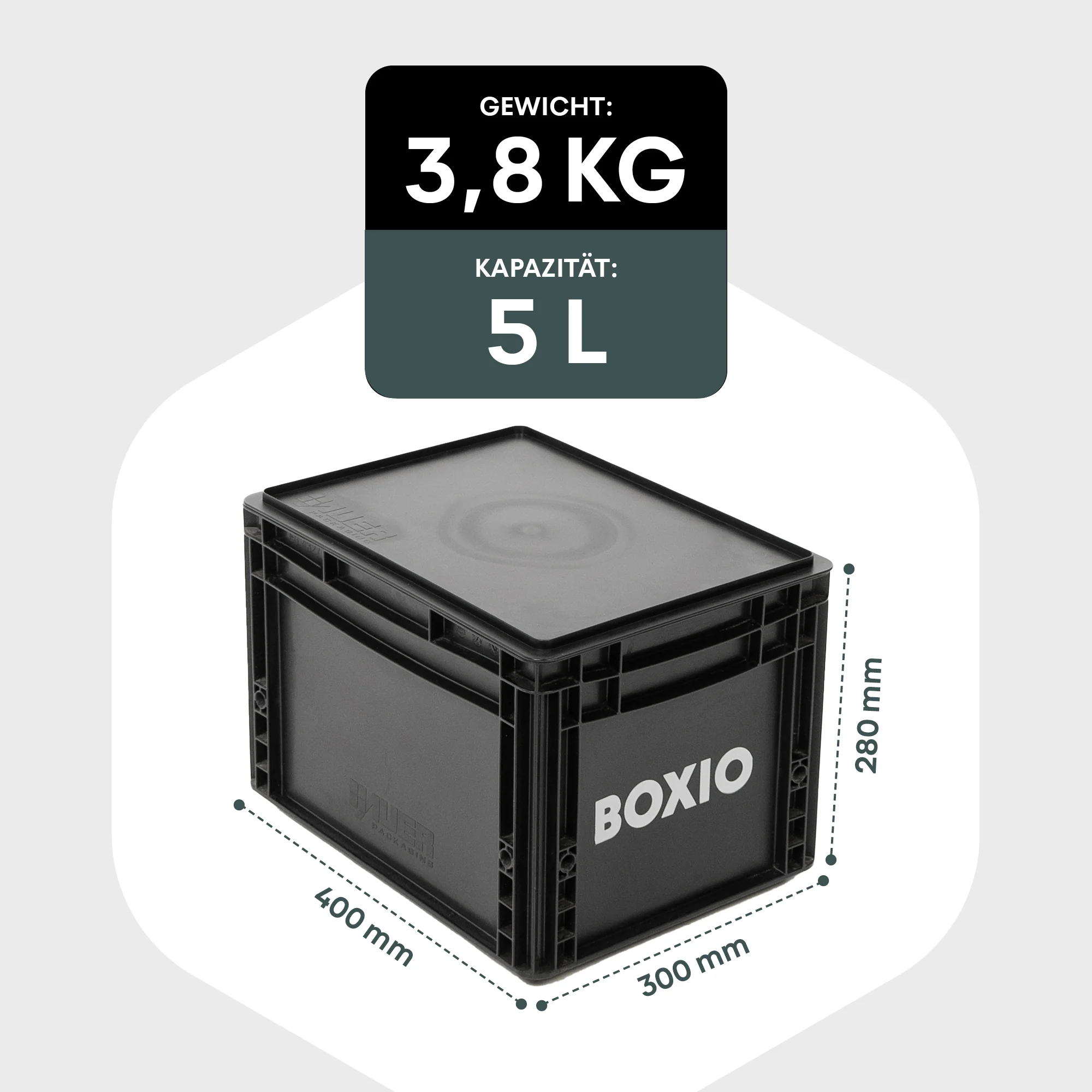 compact Eurobox format: 400 x 300 x 280 mm (L x W x H with lid)